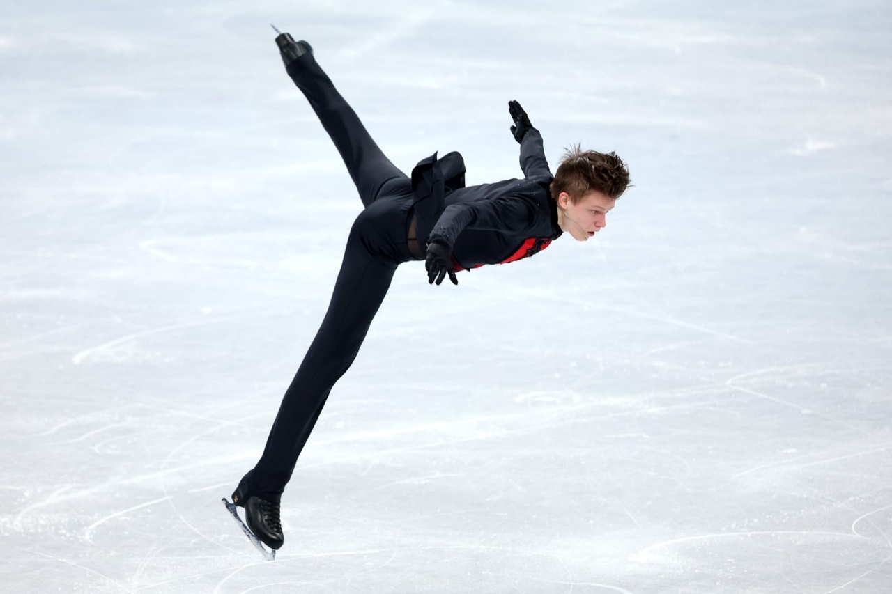 Андрей Мозалев упал с четверного сальхова, затем сделал каскад четверной тулуп + тройной тулуп, тройной риттбергер, каскад тройной аксель + двойной тулуп, упал с четверного тулупа, прыгнул тройной аксель, каскад тройной лутц + ойлер + тройной сальхов. Набрал 156.28 балла (233.33 по сумме).