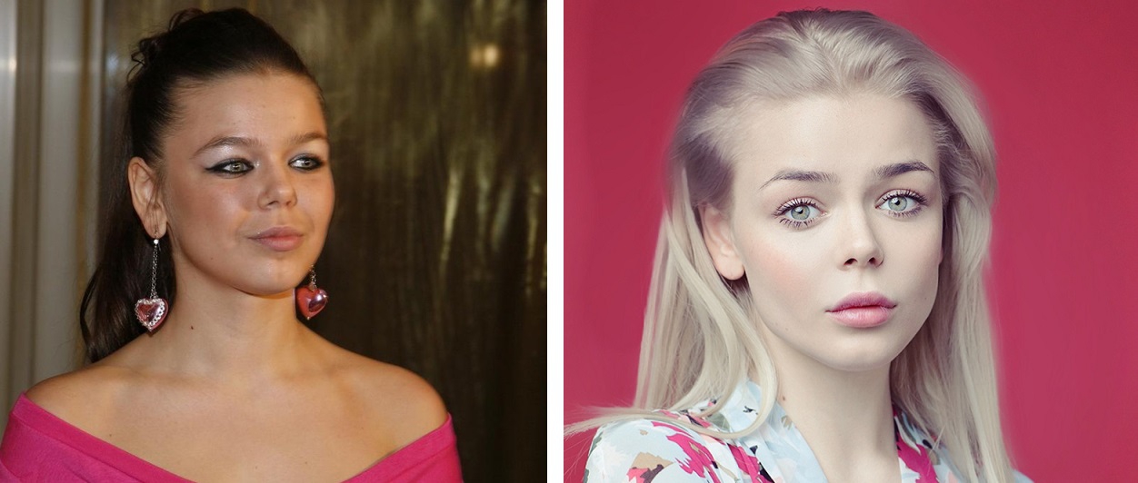 Глаза артиста – мощный инструмент, и Алина умело его использовала: детская, но какая-то «порочная» наивность в купе с озорством во взгляде вызывала умиление и завораживала публику. Для ребенка – это хорошо, для подростка – отлично, но взрослая певица (напомним, что Алине Гросу в 2019 году исполнилось 24 года), изображающая девочку, выглядит комично. Алина это учла, и сегодня у нее взгляд роковой соблазнительницы, при этом глаза стали больше и округлились. Неужели девушка сделала блефаропластику? При внимательном анализе фото Алины Гросу разных лет видно, что разрез глаз радикально не изменился, а от морщин в периорбитальной зоне в силу возраста ей избавляться нужды не было. Так что блефаропластику исключим, а вот к бровям присмотримся. Изменения очевидны: раньше брови располагались ниже, поэтому казалось, что верхние веки нависают над глазными яблоками, теперь же они «взлетели» вверх, создав эффект распахнутых глаз. Добиться такого результата можно разными способами, например, сделать эндоскопический лифтинг бровей или исправить их форму татуажем. Поскольку брови выглядят натурально: скорее всего, был использован третий вариант, что над их формой и цветом поработал опытный броудизайнер.