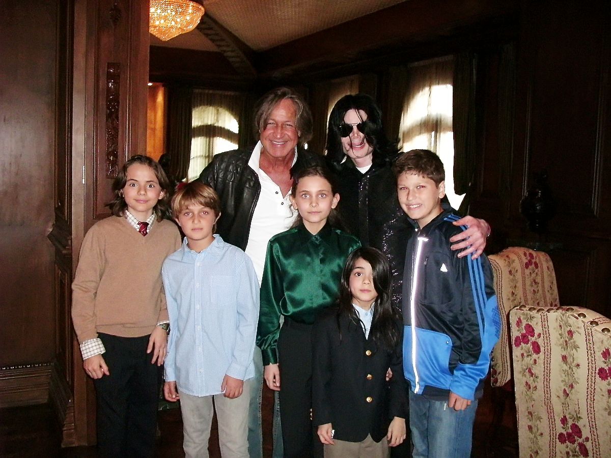 Мохамед Хадид с близким другом Майклом Джексоном и детьми в резиденции Джексона Холмби-Хиллз, которую построил Хадид в Вествуде, 27 ноября 2008 г.
