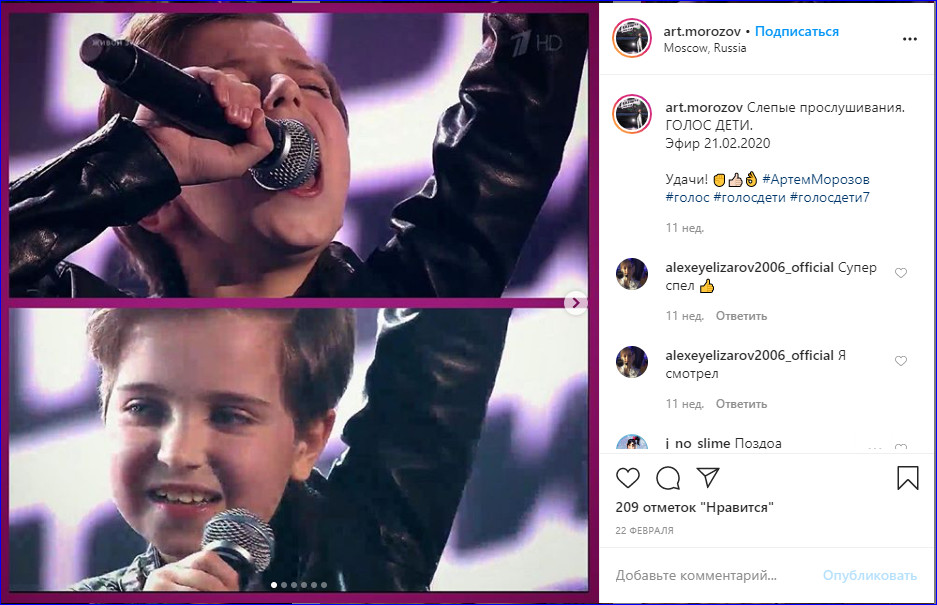 Участие в “Голосе. Дети” стало отправной точкой для взлета карьеры Артема Морозова. Победа в вокальном конкурсе принесла ему признание и любовь зрителей. После этого он записал дуэт с Димой Биланом, стал ведущим детской версии “Евровидения” и постоянным участником телевизионных программ.