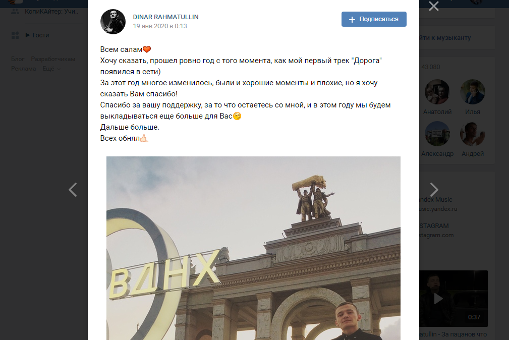 Динар благодарит подписчиков и строит новые планы