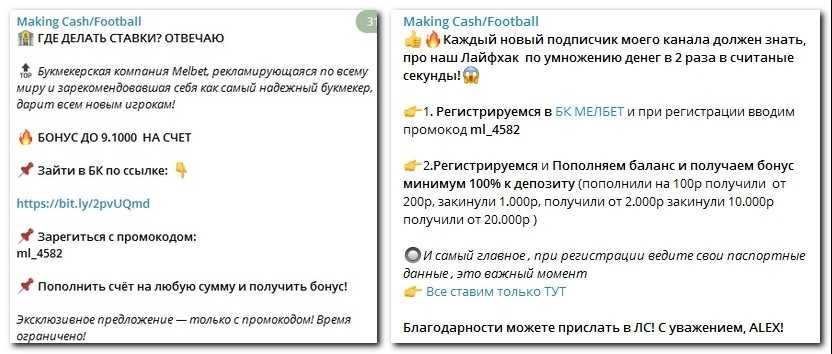 Во-первых, в канале Making Cash новым пользователям предлагается платная подписка. Тогда зарегистрируйтесь у аккредитованных букмекеров за рубежом. Затем они пополняют свой новый счет в букмекерской конторе и делают ставки согласно инструкциям и рекомендациям сотрудников Gumerow: судя по их обещаниям, многократная прибыль будет практически мгновенной.
