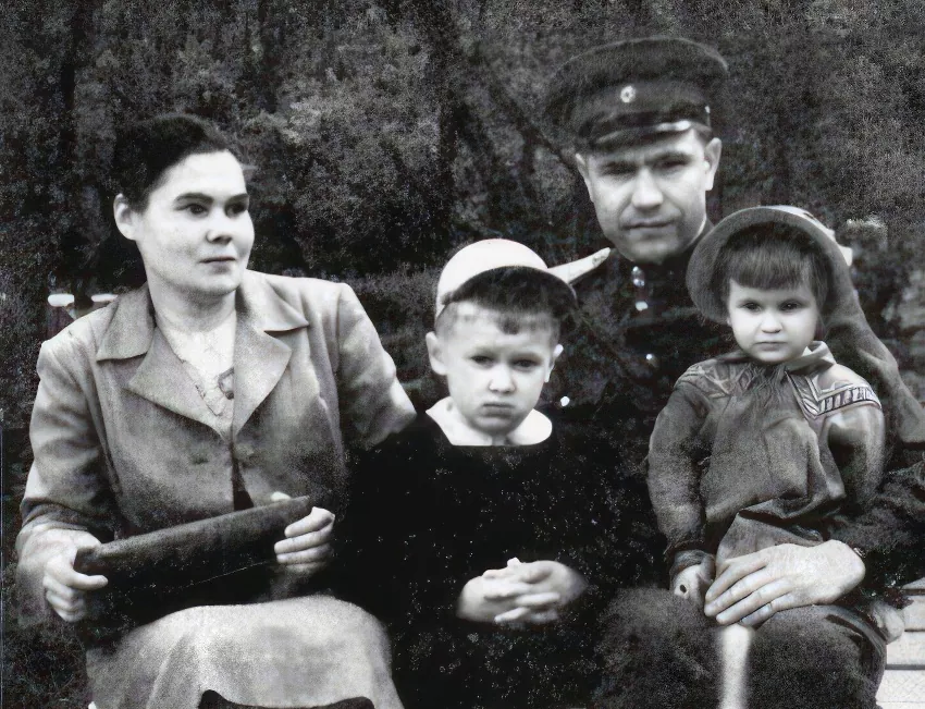 Дмитрий Язов с женой Эммой и детьми Игорем и Еленой, конец 50-х