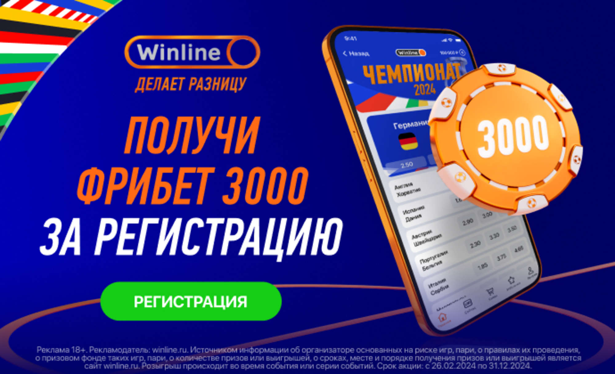 Фрибет в Винлайн: до 3 млн рублей за ставки на Евро-2024