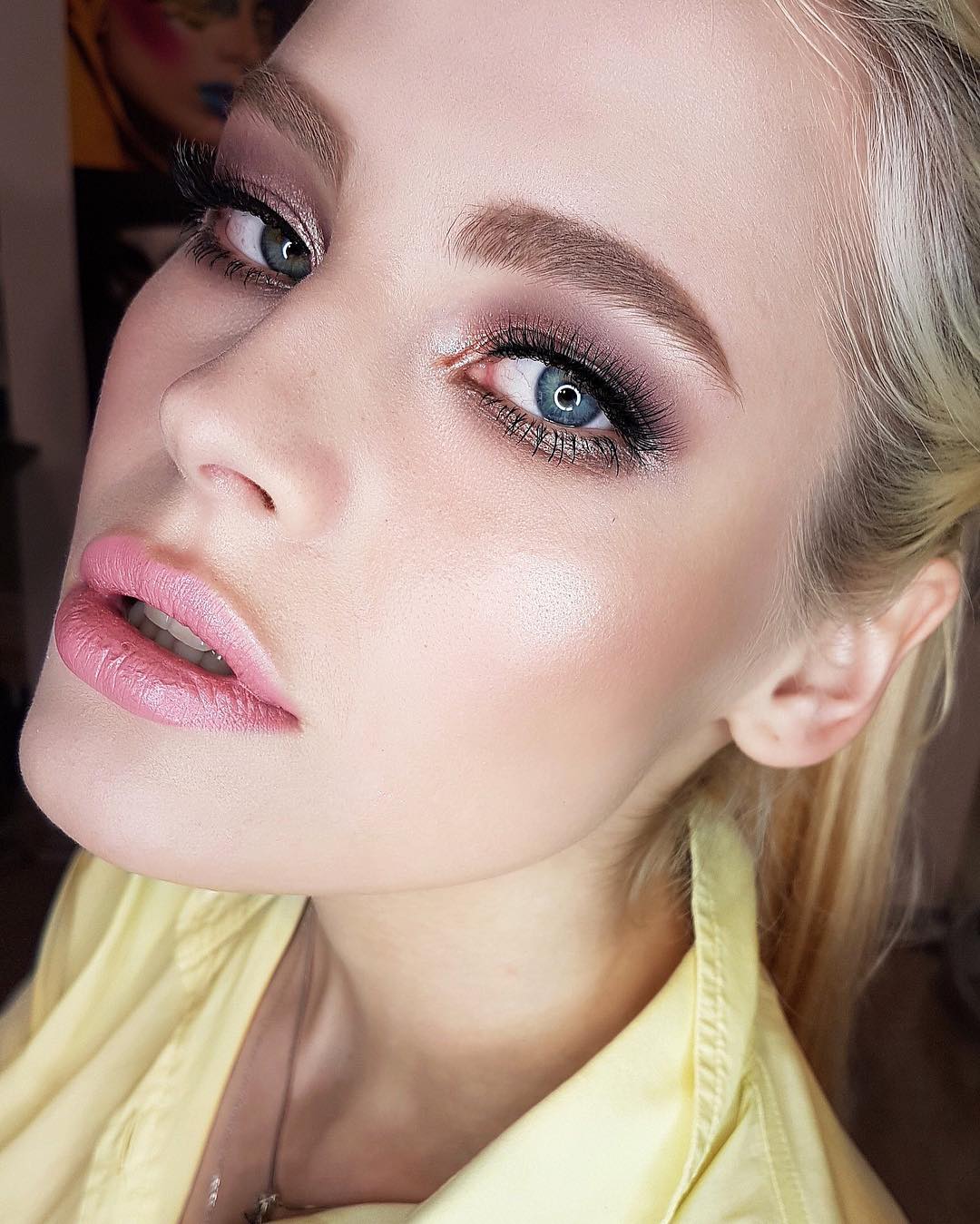 Эффектная блондинка с модным оттенком помады на губах не оставила равнодушным .