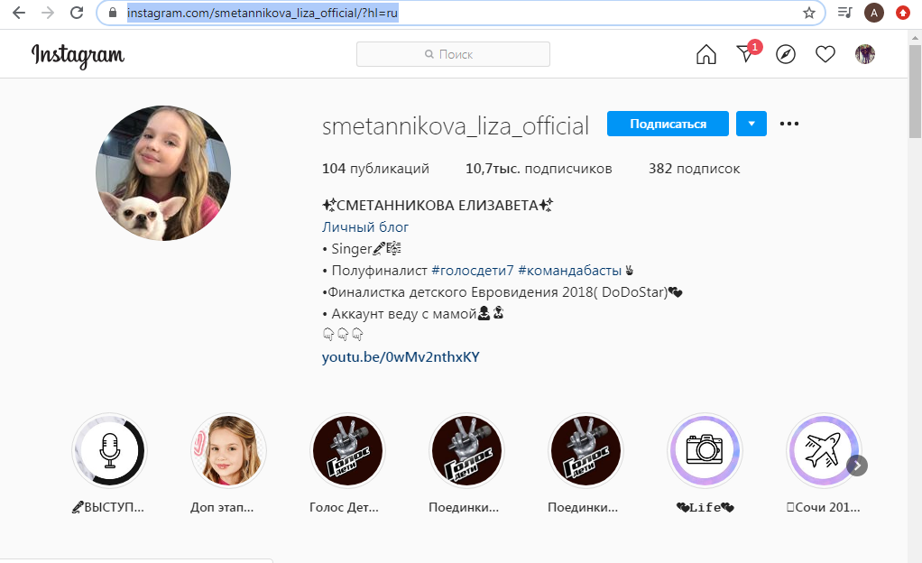 Там можно найти фотографии и короткие видео с выступлений лизы, фото с Бастой, с Меладзе и фотографии с отдыха в Сочи. Также там есть посты про участие в детском Евровидении и простые домашние фотографии.