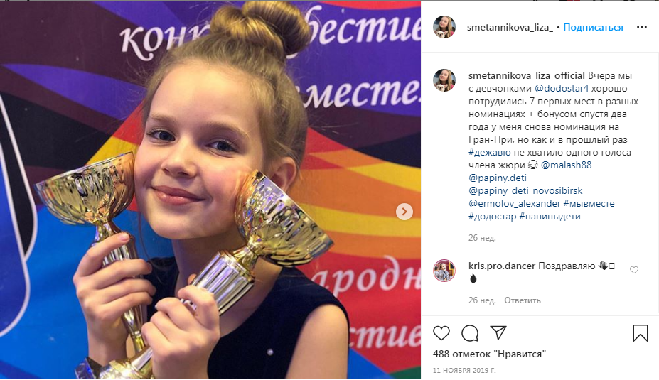 Девочка продолжает упорно трудиться в студии «Папины Дети» и прославлять родной Новосибирск.