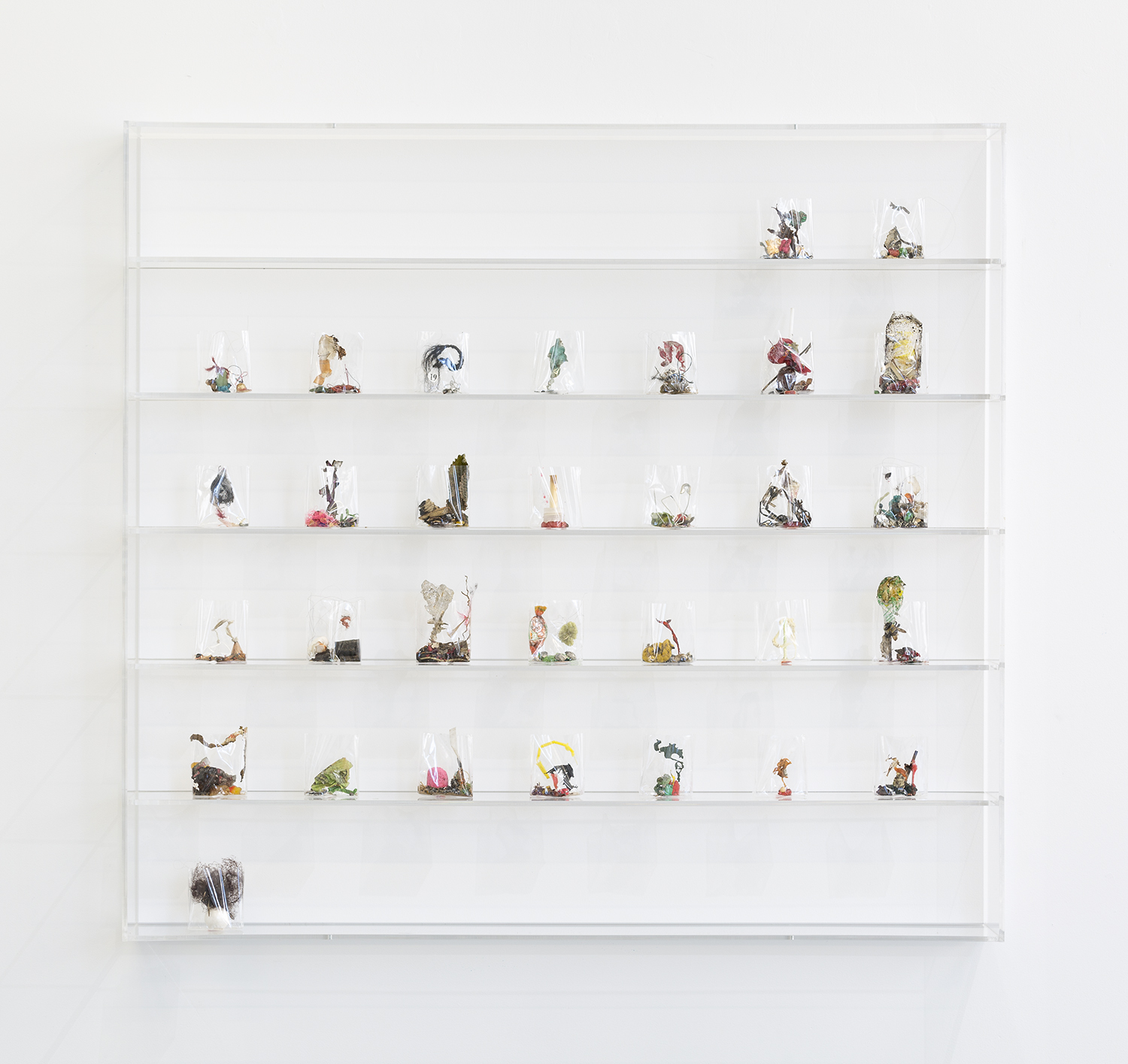 “Yuji Agematsu is a bit of a vagabond. The artist goes around the streets of New York, picking up scraps of things on the ground that interest him, then arranges them into these little sculptures in his cellophane cigarette wrappers. Each one marks a day, and each window displays a month, like a calendar. I think it is such an extraordinary journey. Although they are made of junk, each one is a tiny masterpiece.