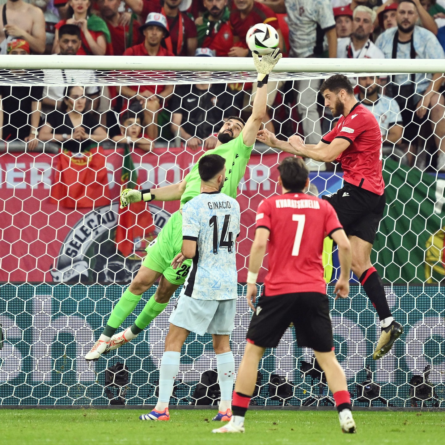 Для выхода в плей-офф Грузии в третьем туре была необходимая победа над топовой Португалией с Криштиану Роналду на острие атаке. И Грузия смогла! Убедительная победа 2:0 и неотразимая игра Мамардашвили – 5 сейвов и первый «сухарь» на Евро!