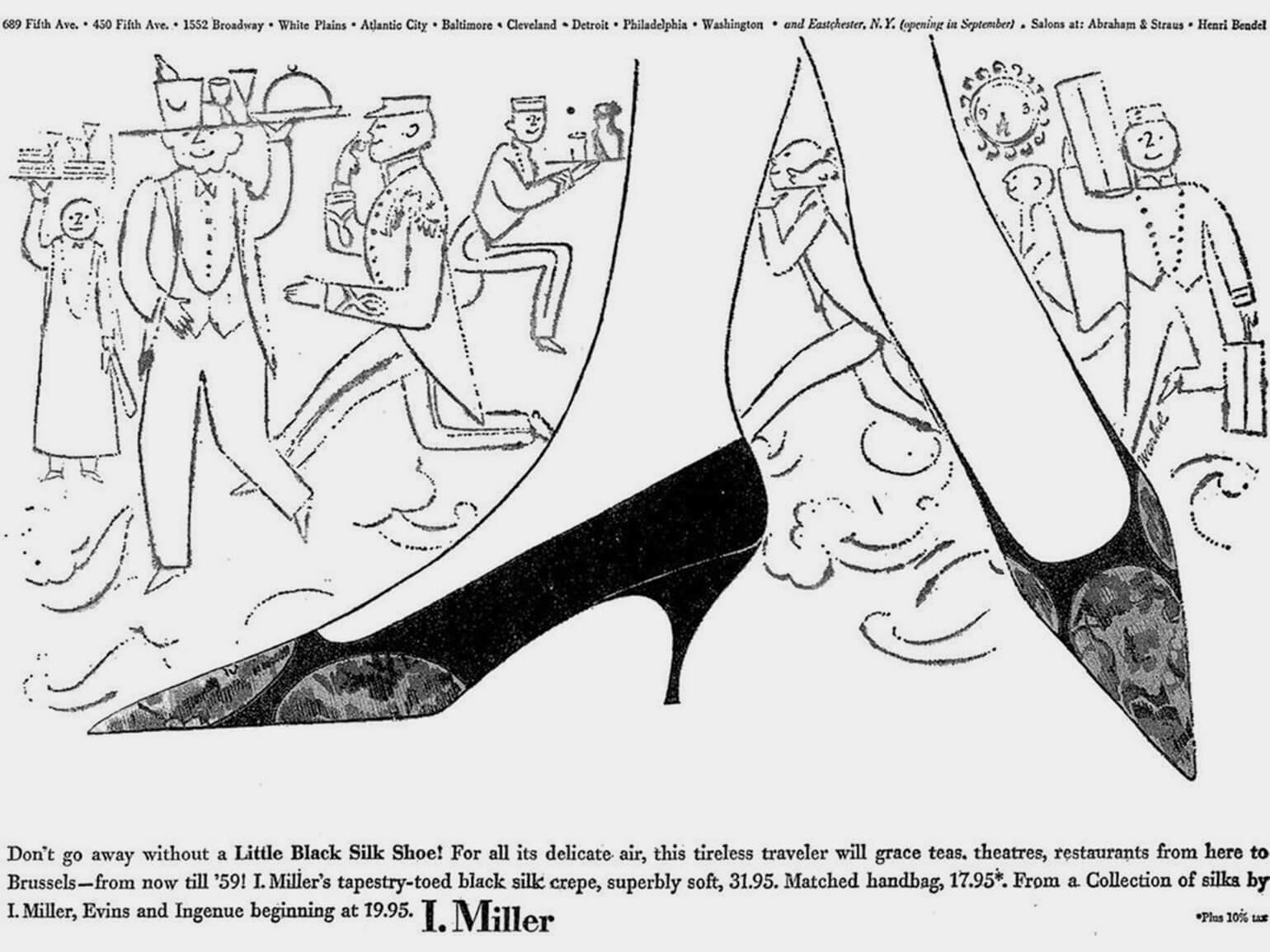Реклама туфель I.Miller, 1958 год. Изображение: Энди Уорхол / Oxford Art Journal
