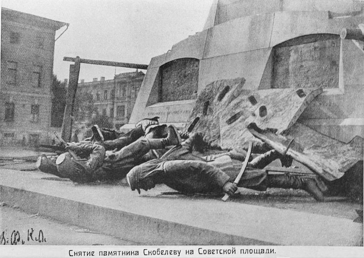 Обломки памятника М.Д. Скобелеву в Москве, 1918 г.