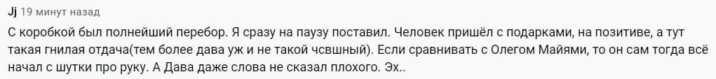 Особенно сильно, по мнению комментаторов, досталось DAVA. Рэпер поделился с ведущими историей об участии в университетском конкурсе и студенческой жизни. Как решили зрители, музыкант вёл себя довольно мило и хорошо держался, пока комики его «прожаривали». Видимо, чашу терпения людей переполнил некрасивый эпизод с тем, как Щербаков пнул коробку с подарками.