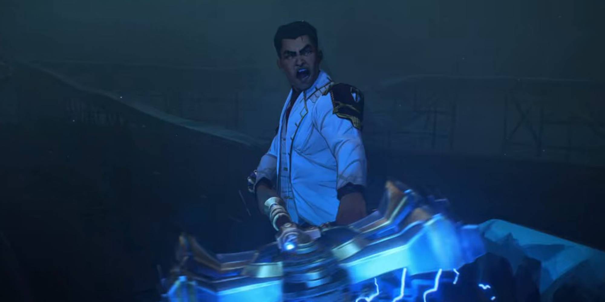 One of his main weapons is a Hextech hammer that he uses to defend Piltover from the upheaval of Zaun and his old partner Viktor. The hammer can transform into a powered great hammer that has the hammer’s head and pommel enhanced so that its ability to deal with heavy blows is intensified. Ir it can transform into a blaster that can shoot lightning orbs. It can also emit an electrical field that surrounds Jayce and knocks back and electrocutes nearby enemies.