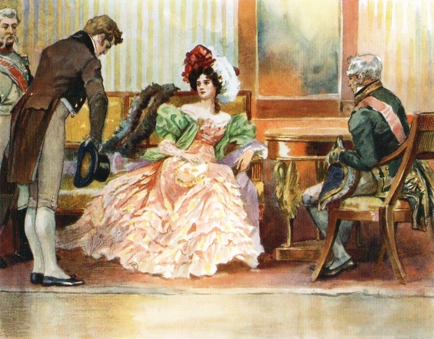 Ниже представлены одни из наиболее известных иллюстраций к роману «Евгений Онегин», созданных художником Еленой Петровной Самокиш-Судковской (1863-1924).