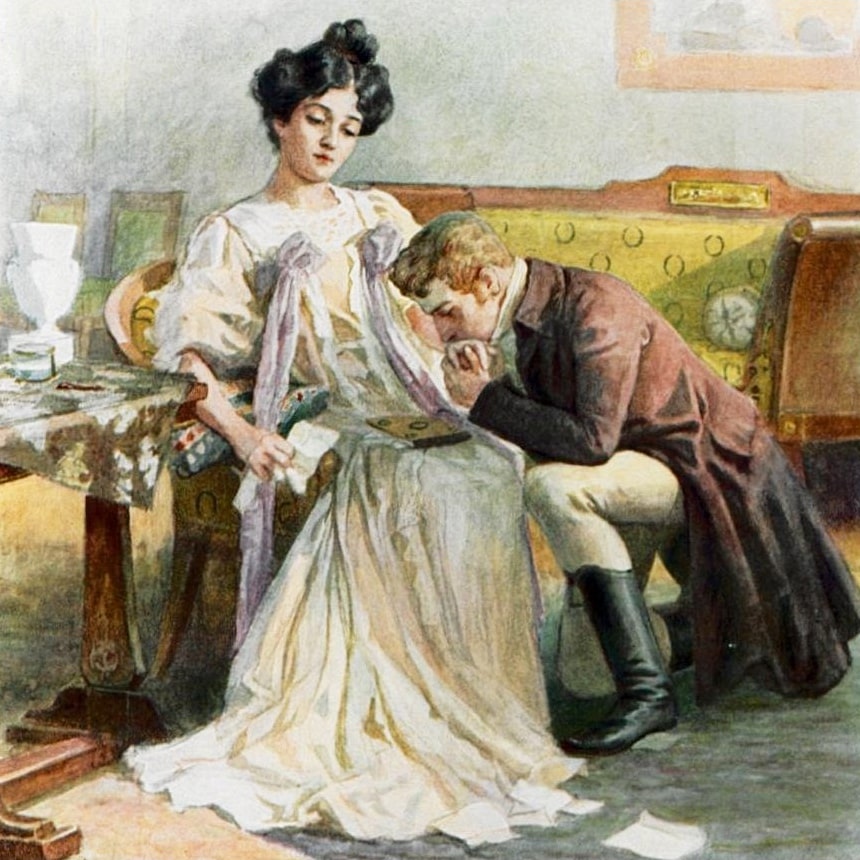 Зато Татьяна после приезда Онегина была не похожа на себя. Дни и ночи девушка думала о Евгении, представляя в мыслях, как они гуляют вечером вдвоем по тенистой аллее. Он читает стихи, а она восхищенными глазами смотрит на предмет обожания.