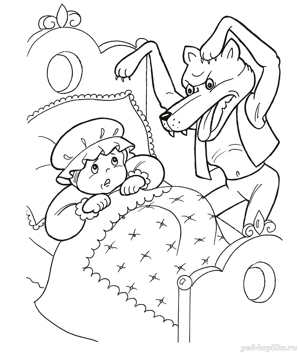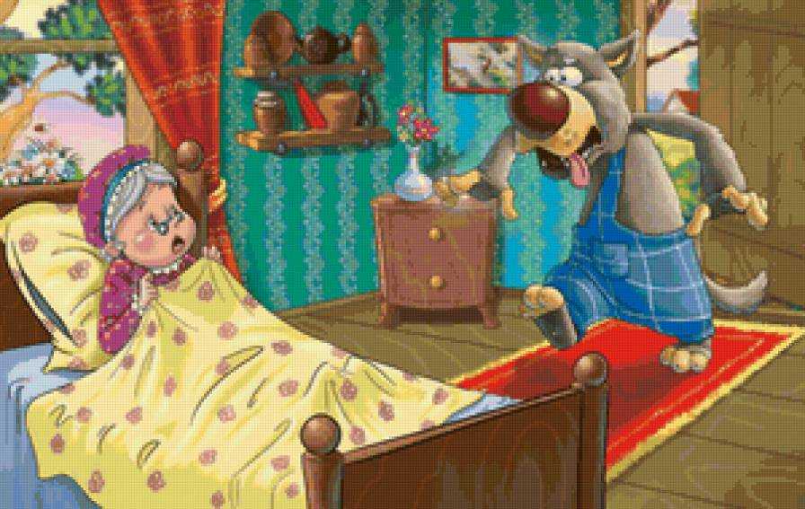 Вошла Красная Шапочка в домик, а волк укрылся, как мог, одеялом и говорит: