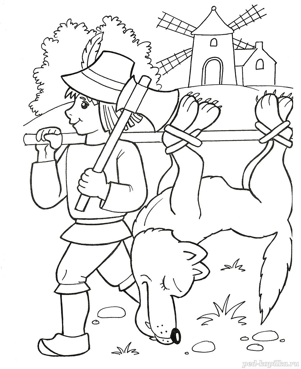 Услышали они шум, вбежали в домик, поймали волка и связали его.