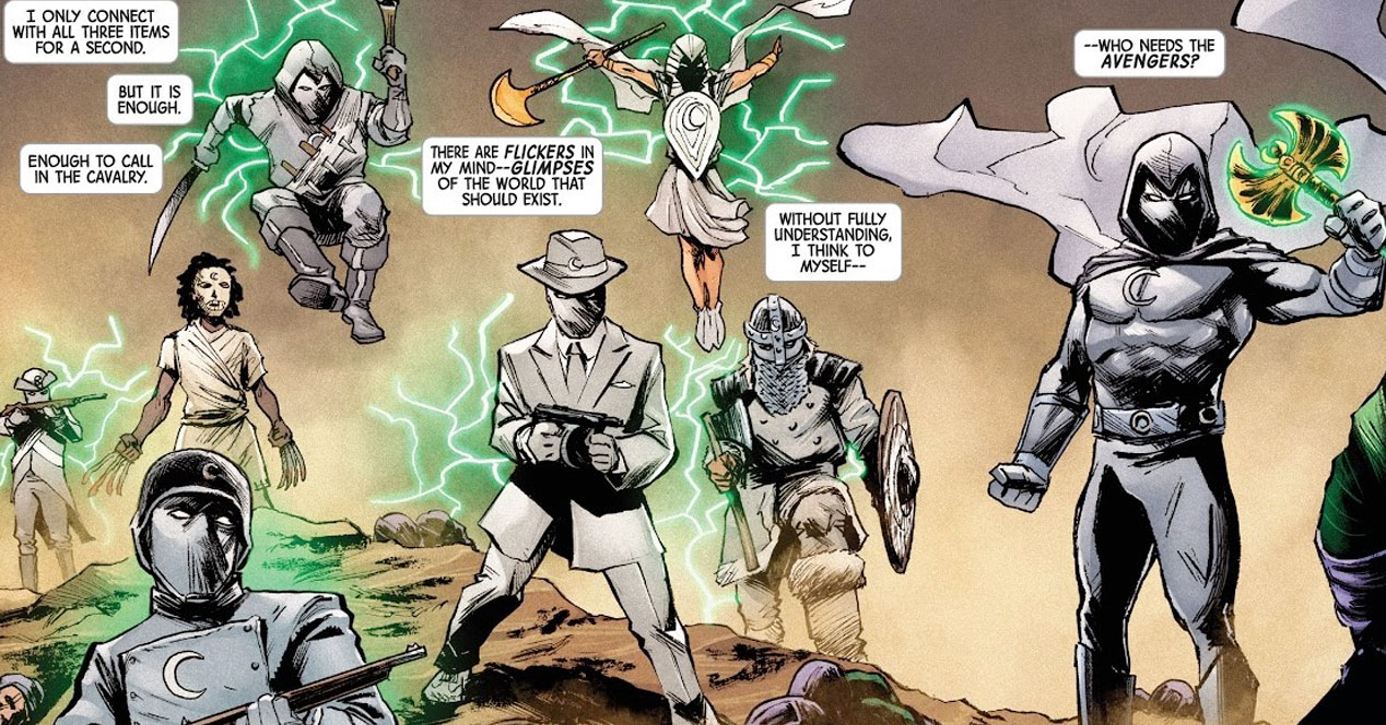 Но есть еще кое-что. Как будто это ветка, Лунный Рыцарь также участвовал в так называемых Мстителях Западного побережья., где он делит отряд с другими персонажами с фабрики Marvel, такими как Соколиный Глаз или Лос Дефенсорес, где у нас есть известные дружинники, такие как Сорвиголова, Айронфист и т. д.
