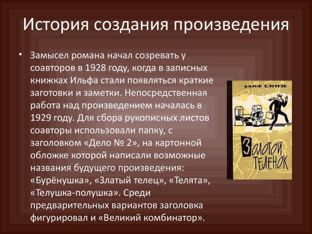Роман Золотой теленок является одним из самых известных произведений Ильи Ильфа и Евгения Петрова, позволяющим читателям окунуться в атмосферу 1920-х годов, эпохи новой экономической политики (НЭП) в Советской России.