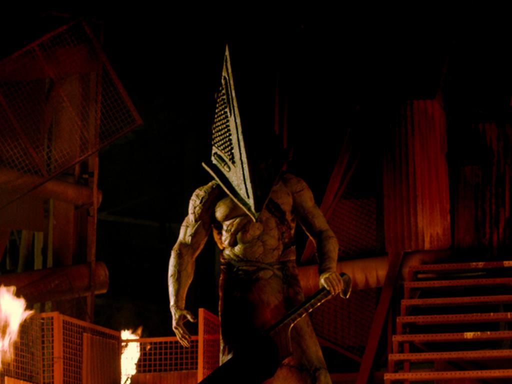 Сайлент Хилл (2006 — Кино для кинотеатров): Пирамидоголовый появляется как один из монстров из альтернативного измерения Сайлент Хилла, он носит свой большой нож, которым он может разрезать металлические стены, и полон решимости атаковать главных героев в насильственным и жестоким образом и доказав, что является обладателем сверхчеловеческой силы. Тем не менее, персонажи могут вырваться из их когтей. Его дизайн напоминает дизайн видеоигры, но с более узким и острым шлемом. О его происхождении или мотивах сообщается не так много подробностей, так что это большая загадка.