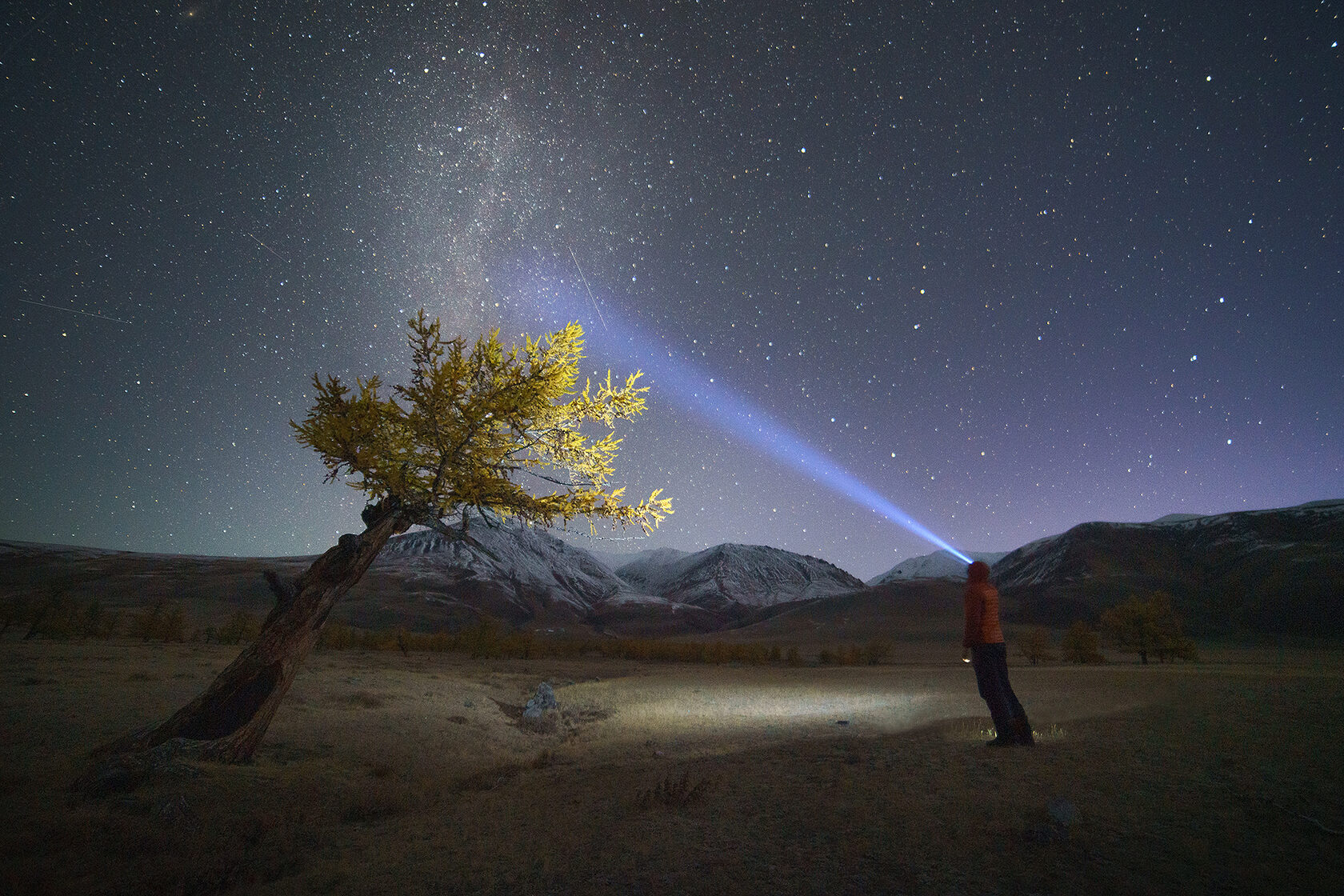 Ночной диалог.Чтобы снять это фото, мы встали в 3 ночи, поскольку полная луна заходила в 4.30. Дальше 25 км по гребёнке, трясучке и местами по хорошим ямам, в темноте добрались до заранее намеченных вечером точек. Было довольно холодно, примерно -8, и это ещё повезло, что не было ветра, который в тех местах постоянно. Сняв буквально несколько кадров, мы пошли греться в машину, в ожидании рассвета. Обычно зритель и не догадывается, что за пейзажной фотографией стоит не только удача, но и работа.