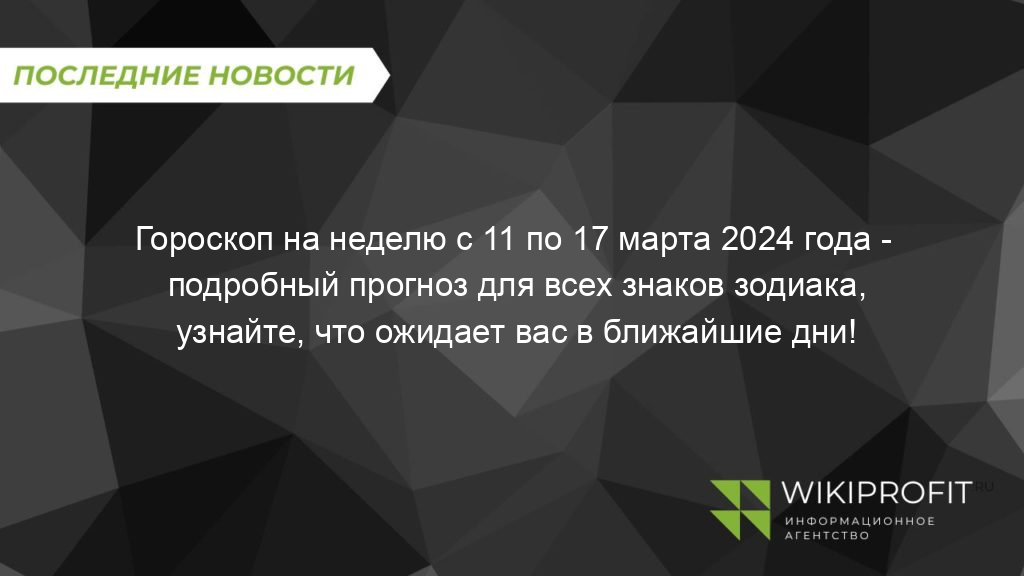 Гороскоп на неделю с 11 по 17 марта 2024 года — подробный прогноз для всех знаков зодиака, узнайте, что ожидает вас в ближайшие дни!