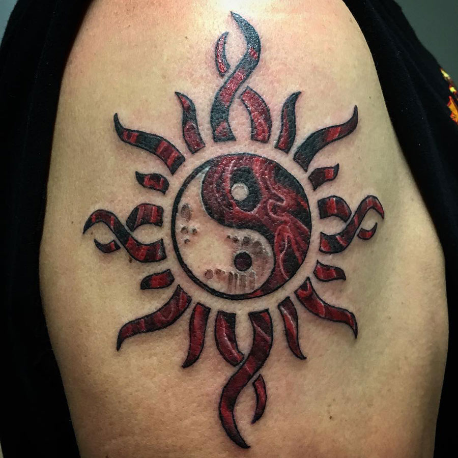 Крест говорит о преданности религии, ранее войны использовали его в качестве оберега, набивали эскиз перед тем, как отправиться на сражение. Инь-ян олицетворяет единство противоположностей, делая такое тату, человек заявляет, что всегда найдет выход из положения. Татуировка в виде браслета может служить амулетом, оберегом