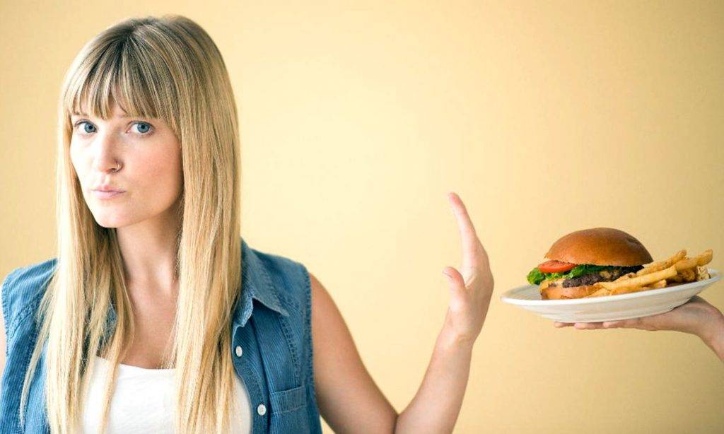 Определенная пища: не ту, что ты хочешь, не то, что употребляет большинство людей, типа колбасы, сыра, майонеза, кетчупа, жаренной картошки, чипсов, пельменей, сухарей и прочего дерьма