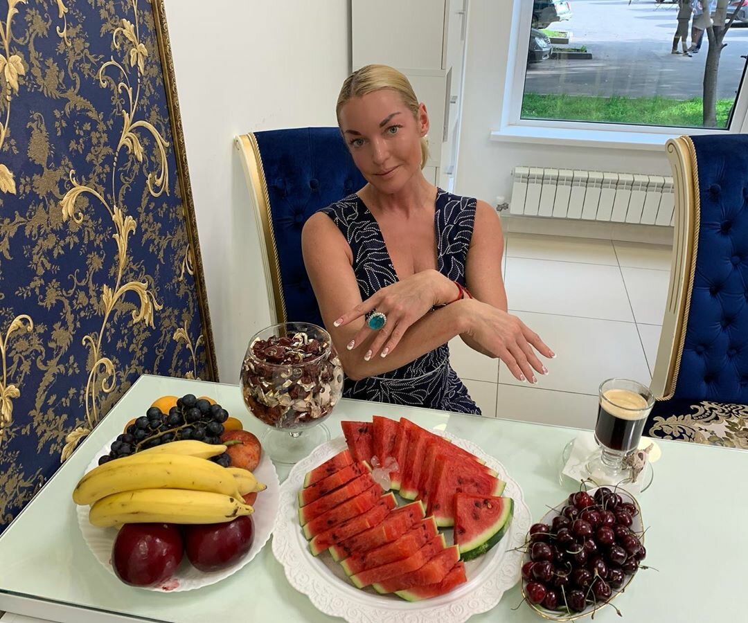 Анастасия Волочкова ежедневно выпивает кисломолочный напиток тан, при этом пьет его утром и вечером. И считает, что именно правильное питание помогает ей не только выглядеть хорошо, но и быть здоровой. Также в холодильнике Анастасии много продуктов, которые она использует для косметических процедур.